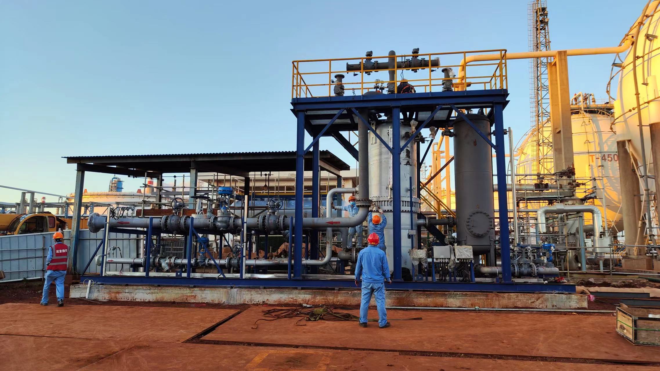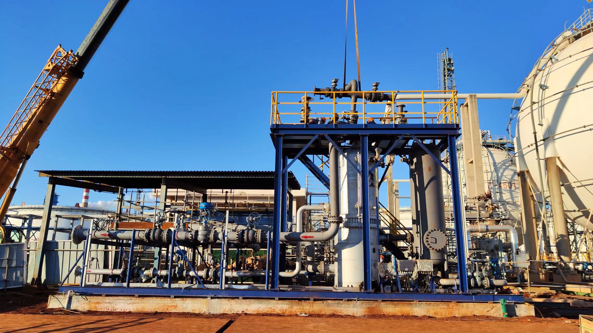 ?由我公司承建的中石化海南煉化罐區(qū)用LPG氣化器,經(jīng)過我司員工日夜奮戰(zhàn),歷時50天順利交付,LPG氣化量50噸/小時,是迄今為止石化行業(yè)最大的氣化設備。由于設備大、制造難度高、工期緊,又趕上疫情放開集中”渡陽“,很多工人不能到崗,公司上下頂著各種壓力,協(xié)調人力,加班加點,終于如期交付業(yè)主,業(yè)主監(jiān)理單位對我們能在這么短的時間、并且高質量的完成設備交付,給予了很高的評價!